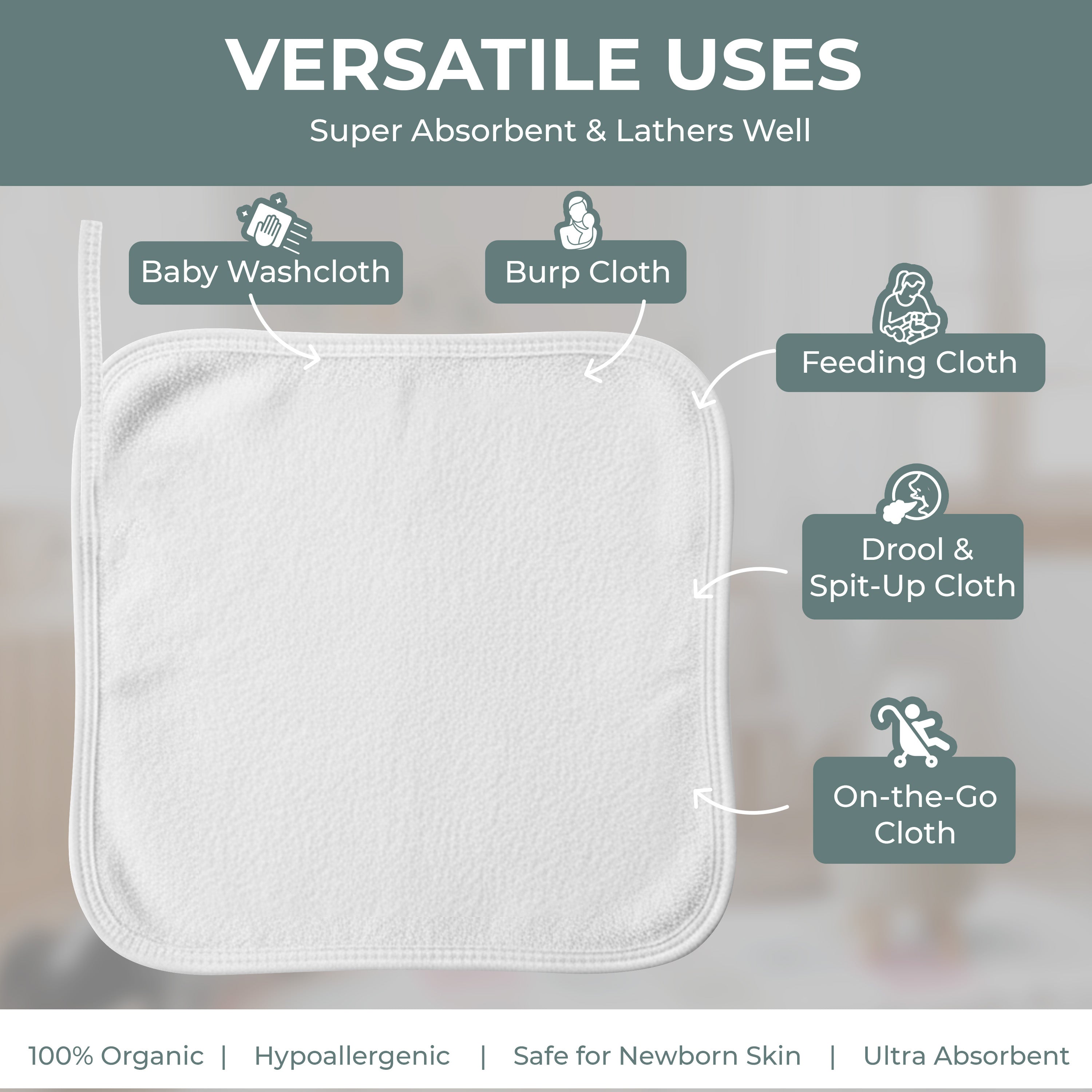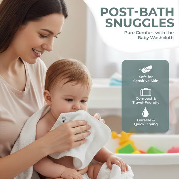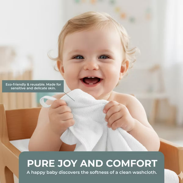 Give your baby the gentle care they deserve with the Bamboo Baby Washcloths Pack of 6, crafted for softness, purity, and practicality. Each organic baby wash clothe measures 10x10 inches and is made from 100% natural bamboo, offering a silky-smooth texture and excellent absorbency ideal for delicate newborn skin. The double-layer bamboo terry weave of these baby washcloths newborn features tiny plush loops that soak up water quickly while staying soft and durable after every wash. Naturally hypoallergenic, toxin-free, and dye-free, these baby washcloths bamboo are safe for babies with sensitive or eczema-prone skin, ensuring gentle comfort during every bath or diaper change. Designed for modern, eco-conscious families, these reusable bamboo wash clothes baby towels are perfect for bath time, mealtime cleanups, diaper changes, or as reusable wipes. The compact 10x10-inch size of one of these organic baby washcloths sets makes them easy to pack in diaper bags or travel kits, offering quick convenience for moms on the go. Beautifully presented in a natural kraft box, this baby washcloths pack of 6 makes a thoughtful and practical baby shower gift or holiday present for parents who value sustainable, high-quality baby essentials. The clean, minimal design of this organic baby washcloths pack fits seamlessly into any nursery or as a washcloths bathroom décor. Soft, sustainable, and gift ready. These 10x10” Bamboo Baby Washcloths deliver comfort, practicality, and everyday care for modern families this holiday season and beyond as washcloths kids. Product Care: Machine wash cold with gentle detergent. Tumble dry low or air dry. Avoid bleach and fabric softeners to maintain softness and absorbency. Make every bath time a soft, soothing experience—choose Sperric Baby Washcloths today.
