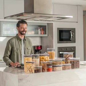 We use this almost every day for storing pasta, chopped veggies, or sauces. The size is generous without being bulky, and it fits just right on our narrow shelf. What really impressed me is the true function even strong smelling foods stay completely contained. I dropped it once and nothing cracked or spilled. It also clicks closed with a satisfying seal and feels very high quality. Great BPA free material too, feels thick and doesn�t give off that cheap plastic vibe. Total win for organizing the kitchen.