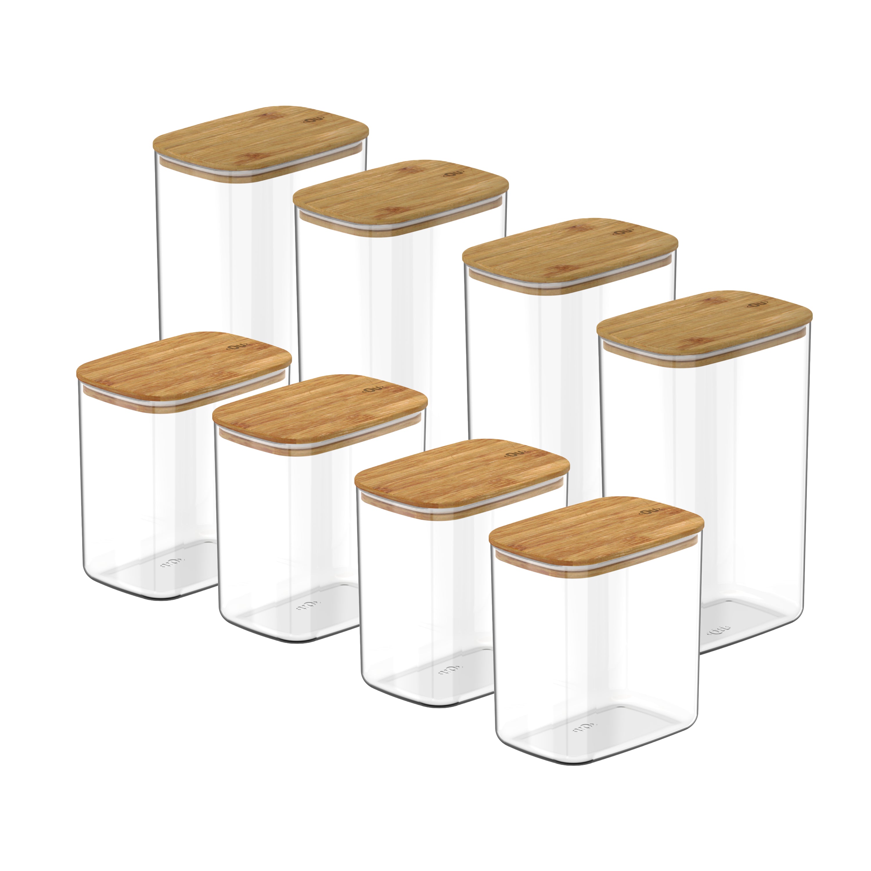 I wanted containers that could handle bulk dry goods without being bulky themselves, and this set is perfect. The 9.6 cup containers are deep, so I use them for flour and pasta. The smaller ones are my new snack organizers. They line up so neatly, and the clean lines make everything look so intentional. I also love the way the bamboo lids contrast with the clear plastic it's like functional decor. Great for small-space kitchens.