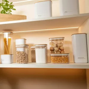 Each container features a natural bamboo lid with a removable silicone gasket that forms a secure, airtight seal—locking in freshness while keeping out air, moisture, and pests. The nonslip, stackable design saves space and adds cohesion to pantry shelves, cabinets, or countertops. Whether you’re organizing dry goods or upgrading your kitchen display, this set blends function and style to keep your space neat, fresh, and beautifully arranged.