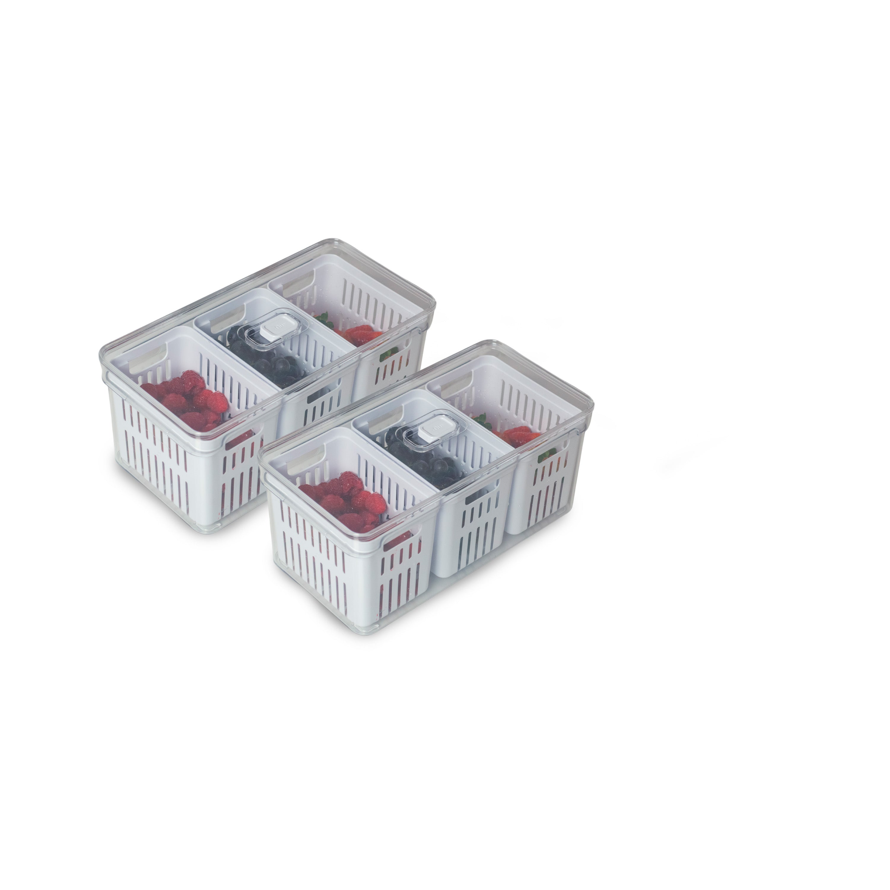 I honestly didn't expect much, but these OU bins blew me away. The triple drain baskets actually help keep everything crisp no more soggy spinach or wet berries. I stack them on the side and pull out what I need so easily now. The lids don't snap shut super tight, but that's fine since they're vented anyway. I use one for washed grapes, one for salad prep, and one for random fridge snacks. The clear plastic makes it easy to spot what's running low. Cleaning is simple too just rinse and air dry. I wish I had bought these sooner!