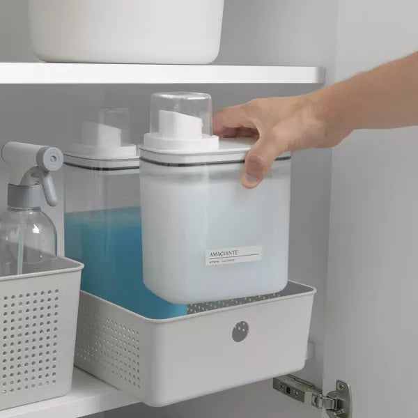 Keep your laundry space tidy and efficient with the 2 Pack Laundry Dispenser Set, featuring a 50oz and 78oz clear liquid container. Perfect for storing fabric softener, detergent, or other cleaning solutions, these dispensers are designed with everyday convenience in mind. The ergonomic lid includes a precise measuring cap with mL markings and a smart internal return system to avoid drips or spills. A secure sealing ring prevents leaks while the crystal-clear body offers quick visual monitoring. These practical, space saving dispensers bring a modern and clean touch to any utility area, helping you streamline your routine with style and efficiency.