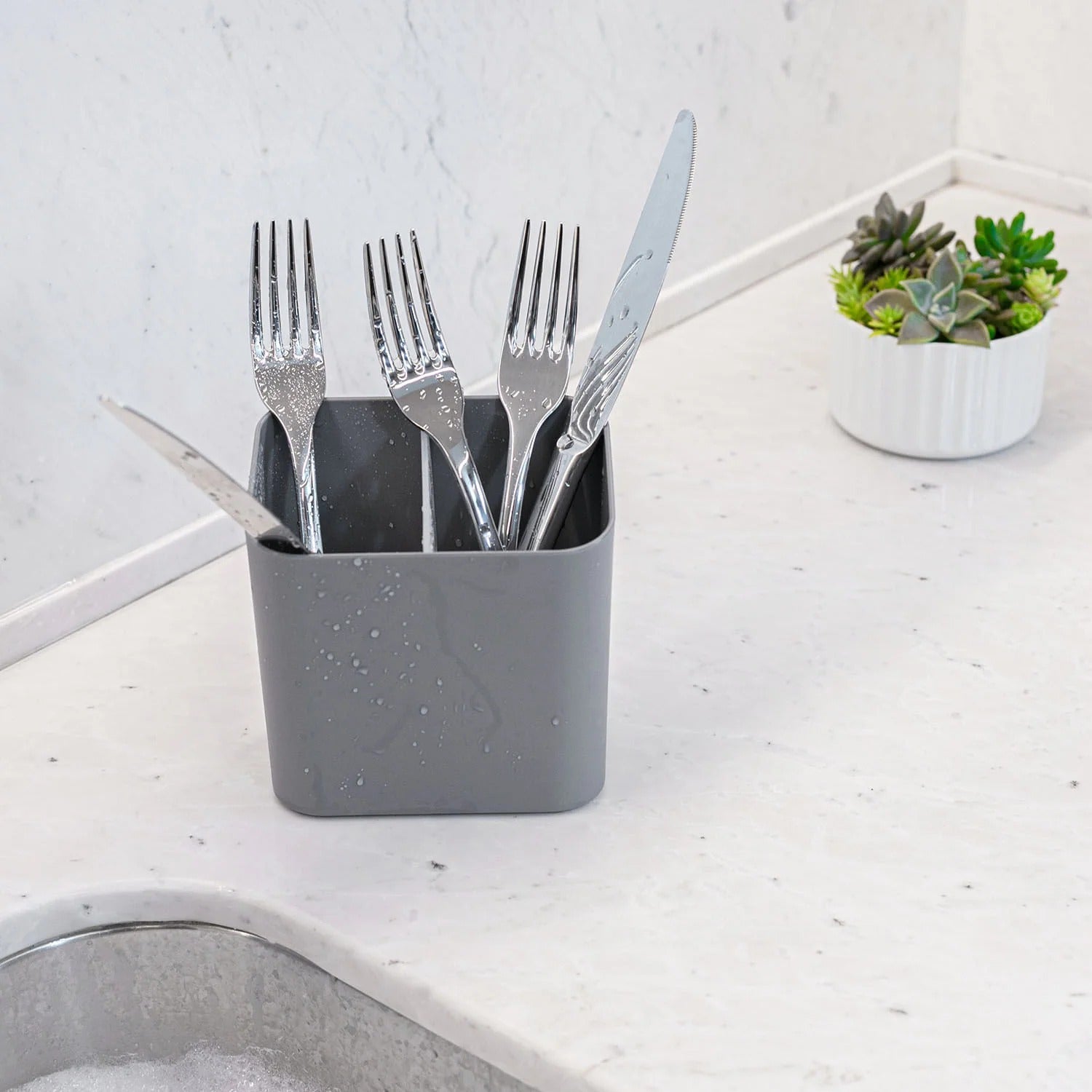 I used to leave utensils in random bowls or the edge of the sink. This caddy changed that. Looks clean, doesn�t slide, and it�s surprisingly easy to rinse out