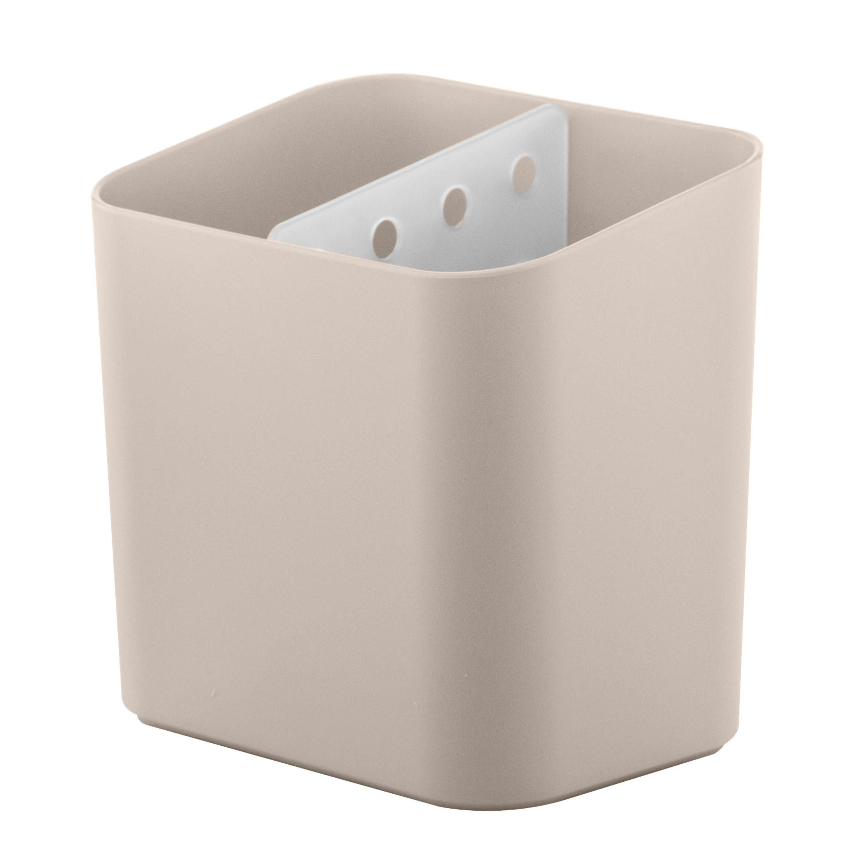 Keep your kitchen neat with this cutlery drainer designed for efficient sink organization. Featuring a removable divider and built-in water reservoir, this compact utensil holder keeps cutlery elevated and dry while preventing mess on your countertop. Made from textured polypropylene for easy cleaning and durability.