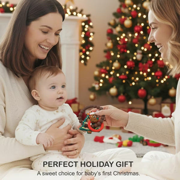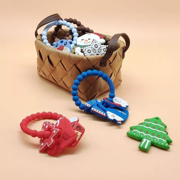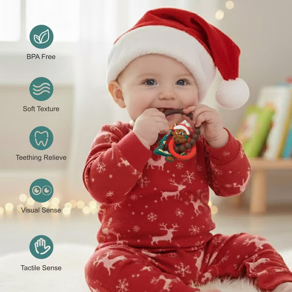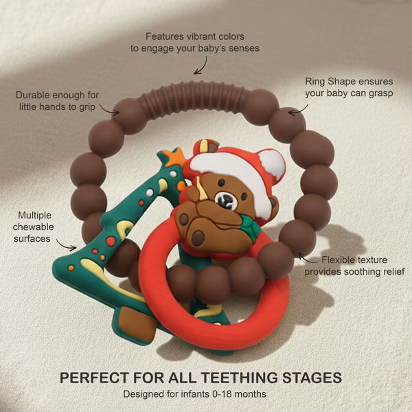 Silicone Christmas Teether Ring Toy for Baby, BPA Free Soothing Teething Relief Toy for Infant & Toddlers 0-18 Months, Perfect Christmas Gift for Baby